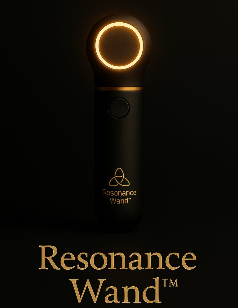 "The Resonance Trinity Massage Wand™ is a hand-held, frequency-infused wellness device designed to harmonize your body and mind. With every use, it unlocks a higher level of relaxation, releasing tension and restoring balance through resonant energy."